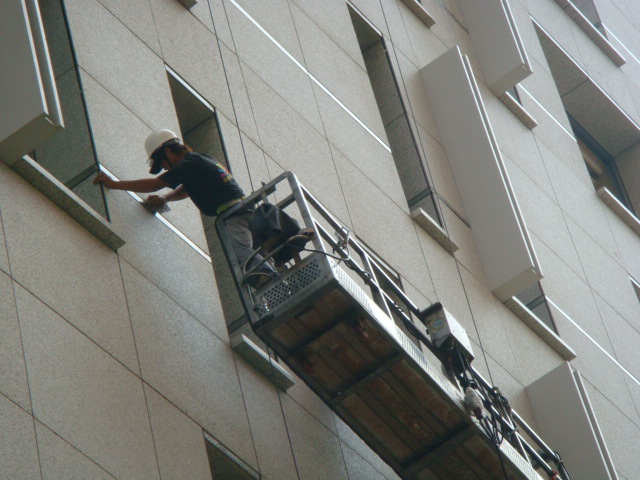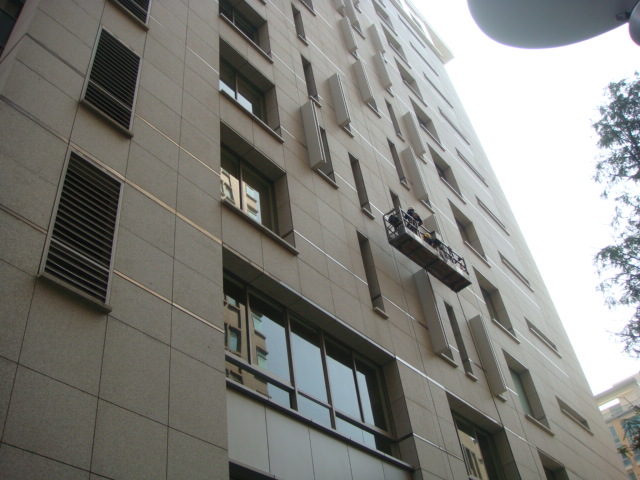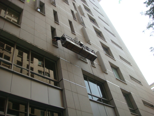 外牆清洗施工,專業團隊高空作業徹底去除污漬灰塵,讓建築外觀恢復潔淨亮麗風貌。