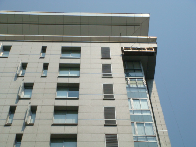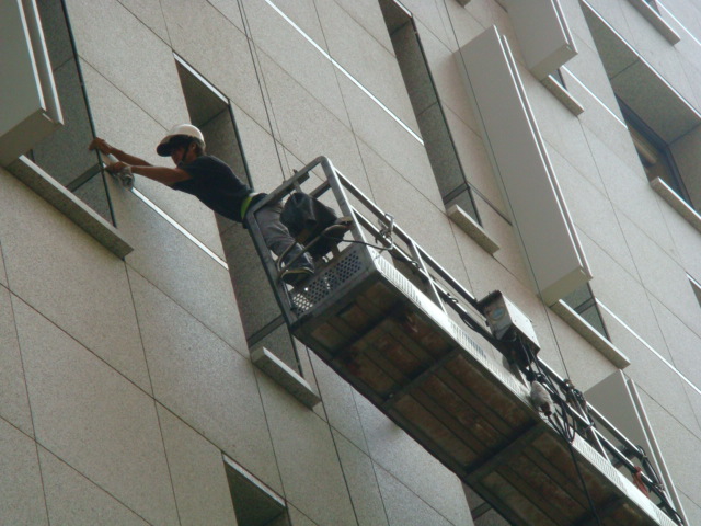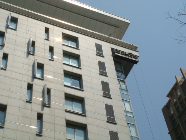 外牆清洗施工,專業團隊高空作業徹底去除污漬灰塵,讓建築外觀恢復潔淨亮麗風貌。